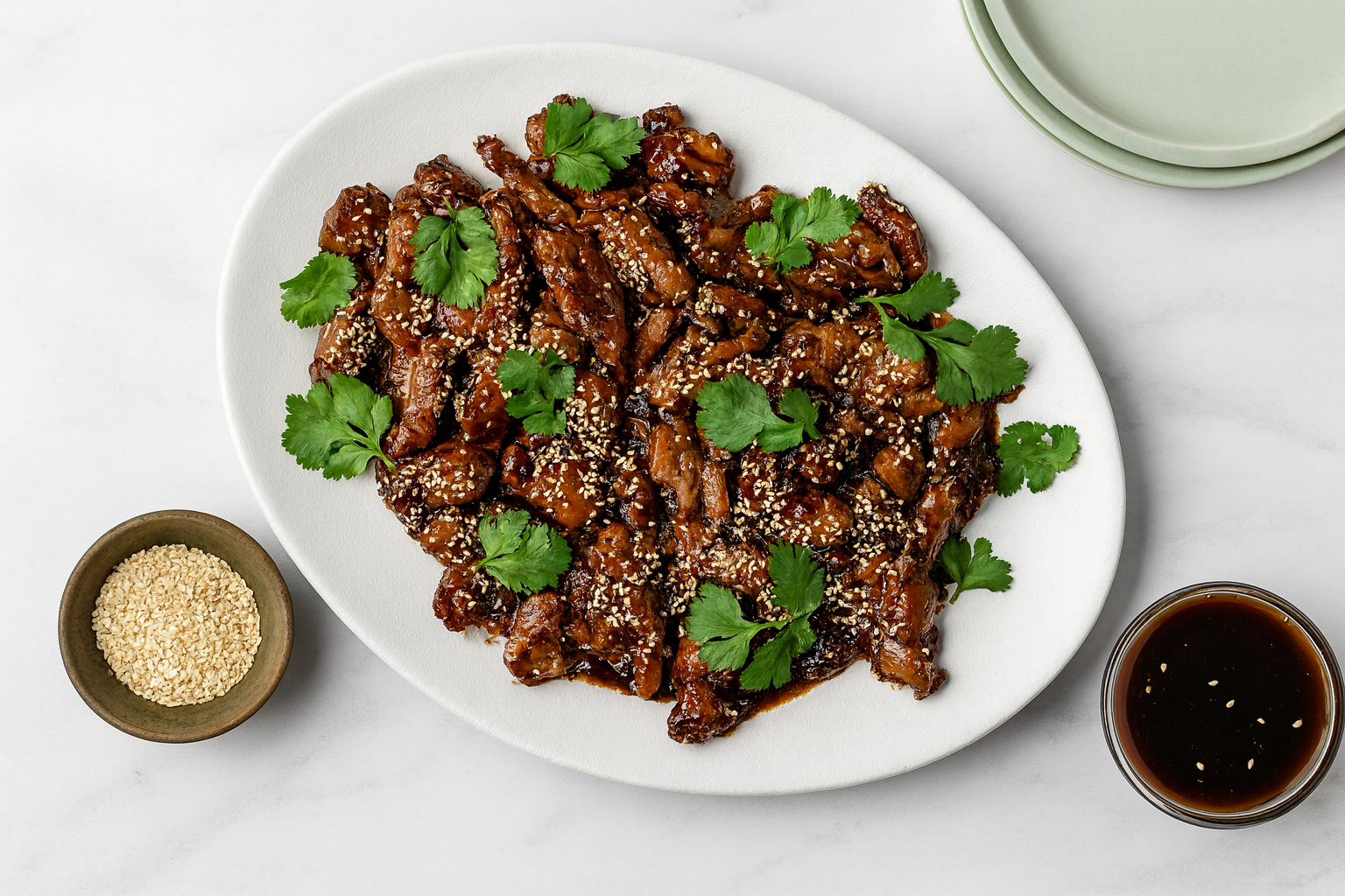 Soy Protein, Vibrant Signature Soyaki Glaze. Fresh Herbs and Spices.